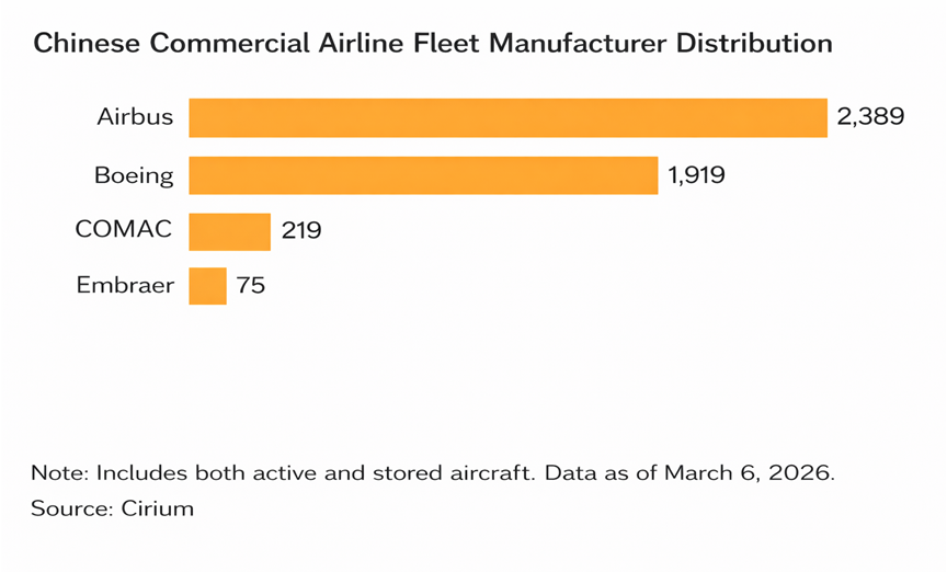 For many countries, aircraft procurement serves as a visible symbol of bilateral trade cooperation while having minimal impact on domestic commodity markets, resulting in relatively limited political resistance. At the same time, China’s aviation market continues to show strong demand for new aircraft. China currently has 41 passenger airlines and 11 cargo airlines. As of March 6, 2026, the combined fleet of these 52 airlines totals 4,573 aircraft, including both active and parked aircraft.