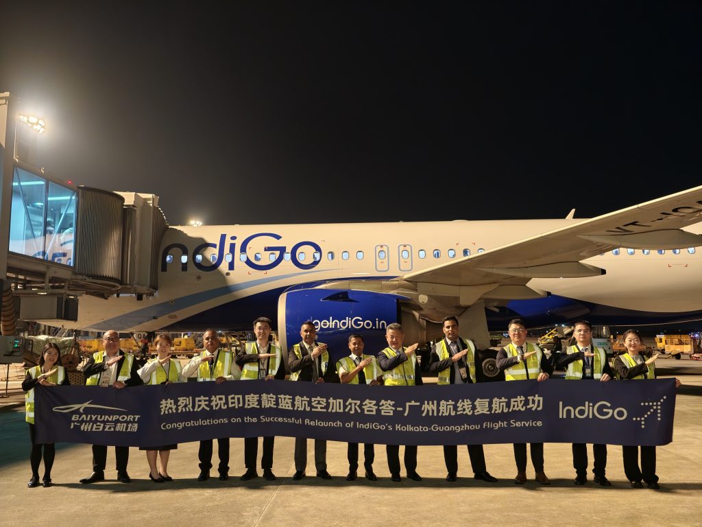 Indian carrier IndiGo completed a flight from Kolkata to Guangzhou, Guangdong province, on Monday, marking the resumption of direct passenger flights between the two countries, which had been suspended for the past five years due to the novel coronavirus pandemic.